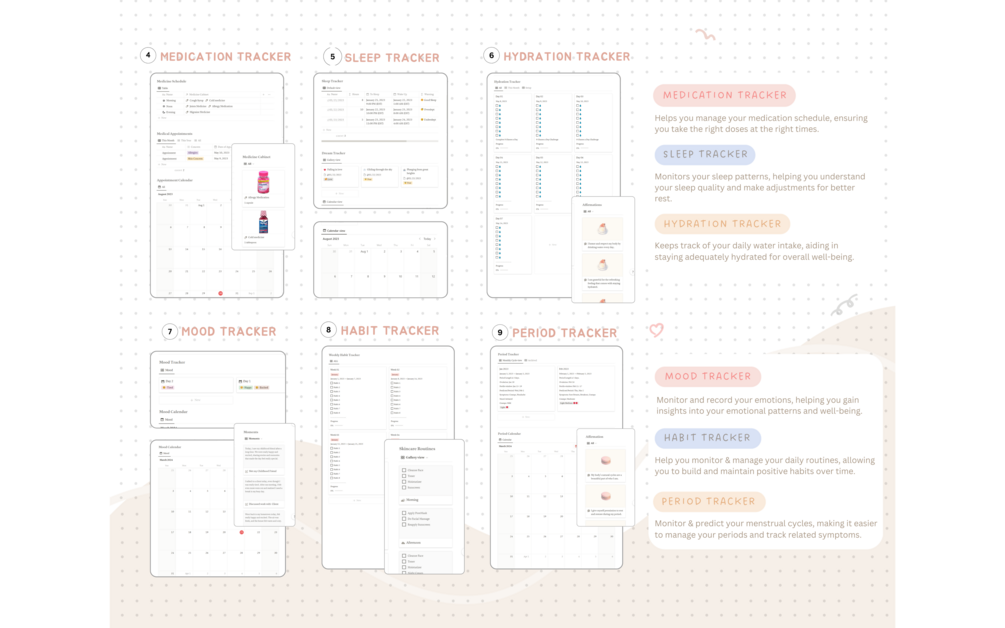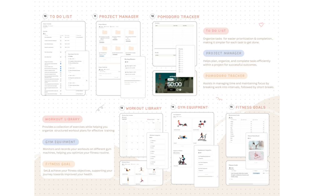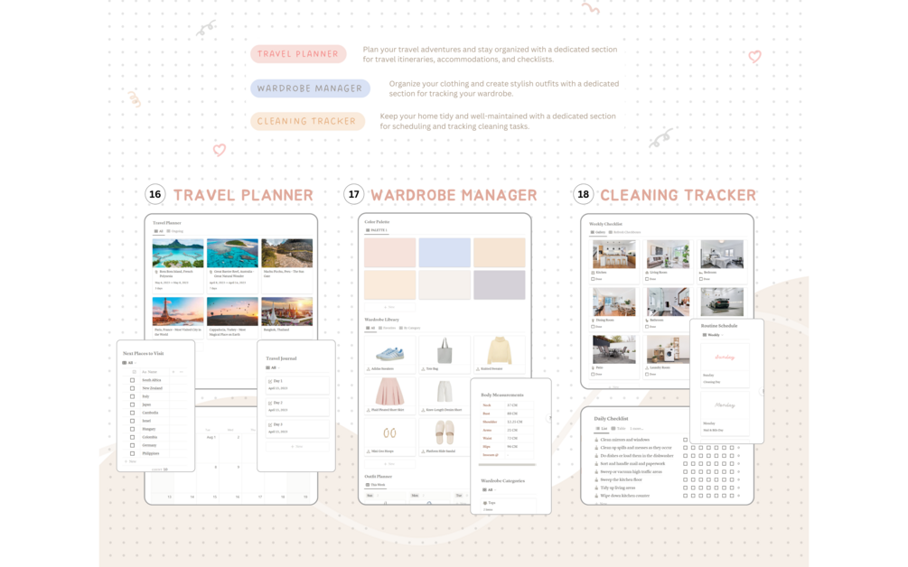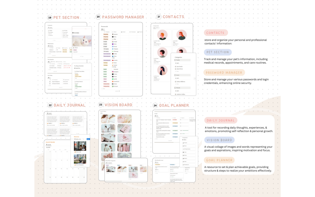 🍨 Fully Packed Functionality: Tailored to cater to your various needs, our Notion life planner includes multiple sections to ensure every aspect of your life is in perfect order.