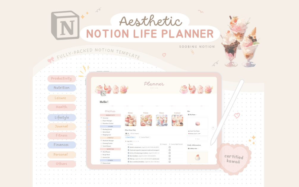 Kawaii Notion Template | Life Planner | Notion Dashboard | ADHD