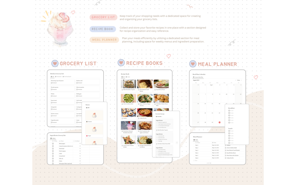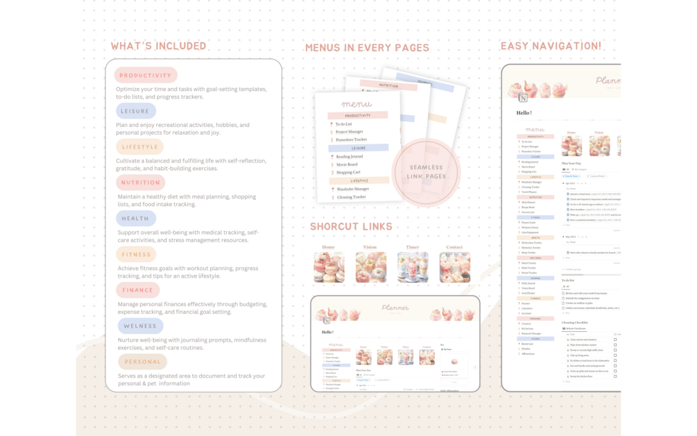 🍨 Seamless Navigation: Even if you're new to Notion, worry not! Our planner boasts a seamless and beginner-friendly navigation system, allowing you to effortlessly glide through your planning journey.